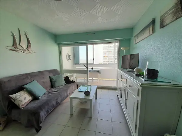 À quelques mètres seulement du sable, dans une résidence calme et bien entretenue, cet appartement propre et lumineux offre un cadre de vie agréable avec une belle vue sur la mer.