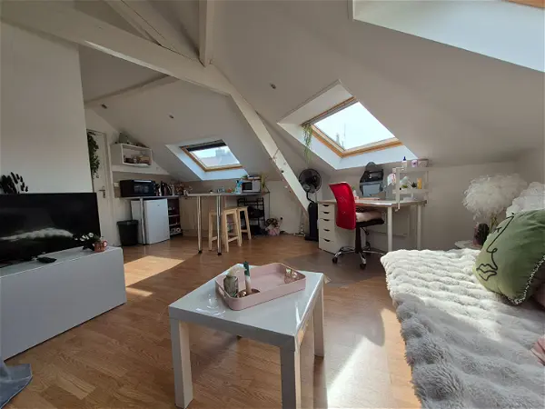 Découvrez ce superbe studio situé au dernier étage d'un immeuble de caractère en briques, dans un quartier calme et recherché.