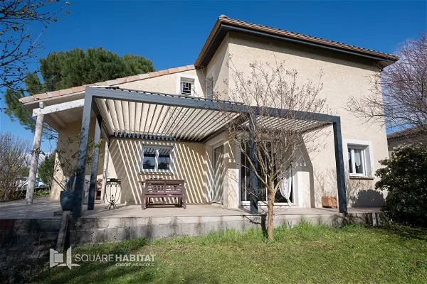 Côté extérieur, la maison dispose d'un agréable terrain arboré de 890m² ainsi qu'une terrasse avec sa pergola bioclimatique électrique .