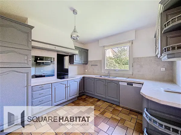 Grande pièce de vie lumineuse ouverte sur une cuisine aménagée et équipée