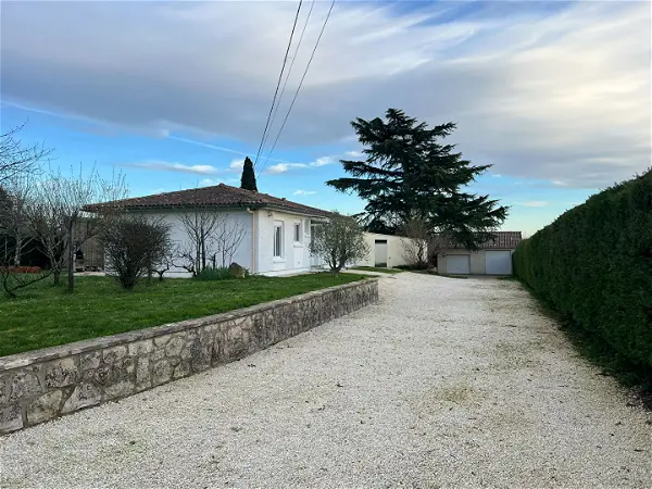 Charmante maison d'habitation très bien entretenue comprenant une cuisine équipée indépendante, un séjour double avec cheminée insert et climatisation, trois chambres, WC, salle de bains et une agréable véranda de 30m².