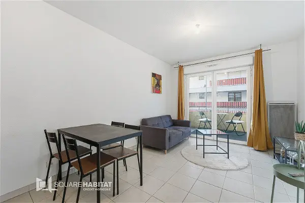 L'appartement se compose d'une entrée avec rangements, d'une pièce de vie lumineuse donnant accès à un balcon/terrasse, d'une cuisine ouverte et aménagée, d'une chambre avec placard, d'une salle de bains, et de toilettes séparées.