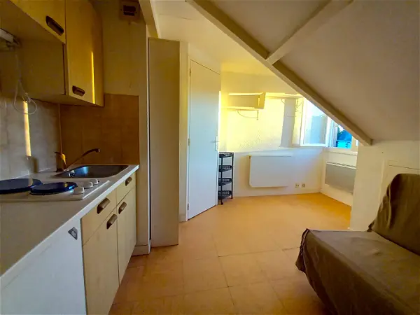 Studette idéalement située à 100m de la plage du Nau au Pouliguen, composée d'une kitchenette aménagée et d'une salle d'eau avec wc . Orientation Sud.