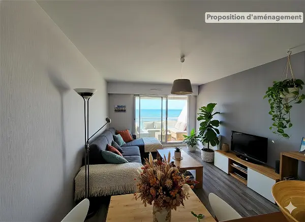 L'appartement offre : une belle entrée, un salon-séjour baigné de lumière, une cuisine pratique, une chambre cosy, une salle d'eau moderne, et un balcon fermé pour vos petits-déjeuners face à l'océan.