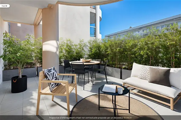 Les 15 m² supplémentaires sont constitué de deux loggias de 9 et 5 m² dont une vue face mer. Elles sont parfaitement habitables