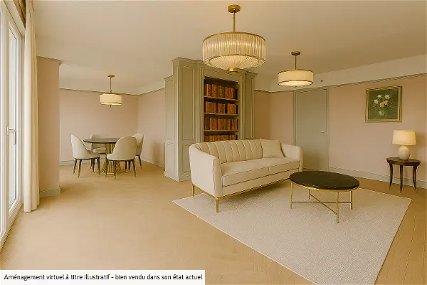 Il dispose d' un grand séjour lumineux, avec vue sur le parc privé de la résidence .