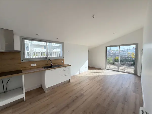 Il se compose d'une cuisine indépendante équipée, pratique et fonctionnelle, d'une salle d'eau avec fenêtre offrant une belle luminosité et une aération naturelle, ainsi que d'un agréable salon-séjour avec parquet, apportant chaleur et cachet à l'ensemble.