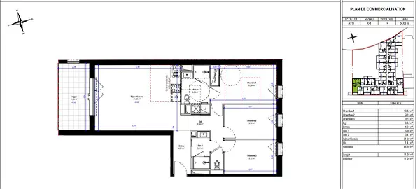 Appartement T4 à partir de 299 900 comprenant, une entrée, un dégagement, une pièce de vie, une salle d'eau, un WC, trois chambres dont une suite parentale avec salle d'eau, WC et placard aménagé. Une loggia. Deux places de stationnement extérieur.