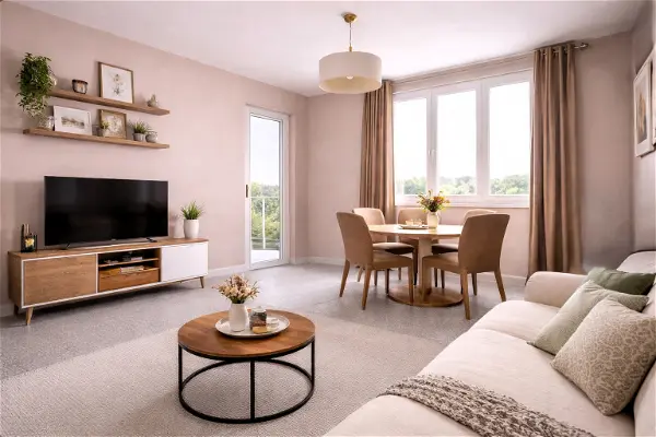 Proposition de relooking virtuel du séjour et de la cuisine (images non contractuelles)