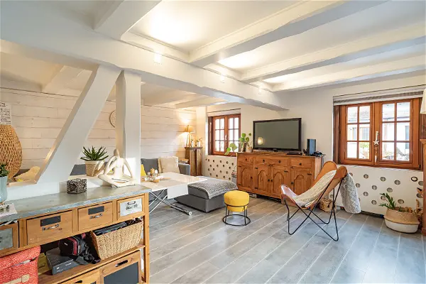 Poutres apparentes, atmosphère chaleureuse, volumes généreux, chaque pièce invite à la douceur de vivre. Le caractère de l'ancien s'y mêle harmonieusement à des finitions modernes, créant une ambiance unique et enveloppante.