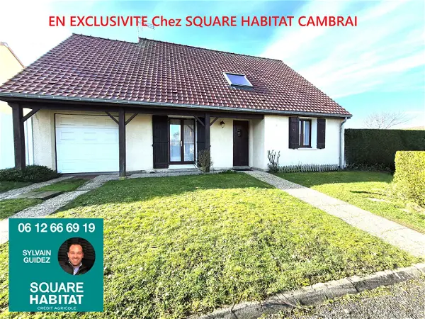 NOUVEAUTE EN EXCLUSIVITE, UNIQUEMENT Chez SQUARE HABITAT CAMBRAI Sur CAMBRAI a 2 min du centre ville PAVILLON INDIVIDUEL des années 90 au calme en très bon état qui se compose :