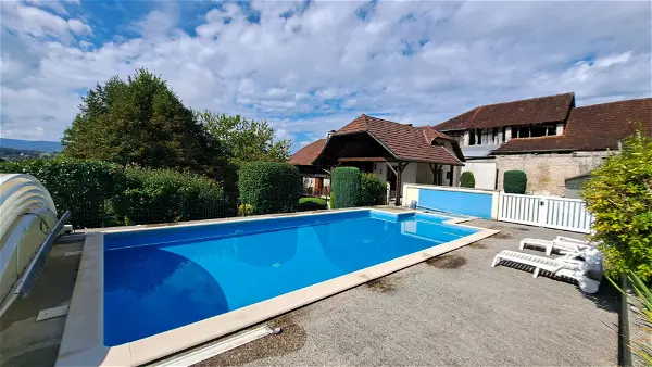 YENNE, laissez-vous charmer par cette superbe maison en pierre de 215 m², nichée sur un vaste terrain. Vous profiterez d'une magnifique piscine et d'une vue dégagée sur les environs, y compris la Dent du Chat.