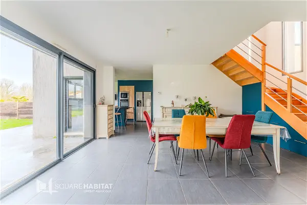 Dès l'entrée, vous serez charmés par un vaste séjour exposé Sud-Ouest, sublimé par une baie vitrée à galandage, ouvrant sur une cuisine américaine moderne, entièrement équipée, idéale pour recevoir.