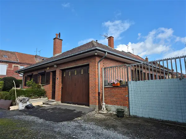 LA MARLIERE - A deux pas de Mouscron et Wattrelos, Square Habitat Tourcoing vous propose ce plain-pied en retrait de rue développant quasiment 100 m² habitables. La distribution est simple : un couloir principal dessert à gauche la cuisine, le séjour de 25 m² et une chambre au bout de 10 m² pouvant servir à agrandir la pièce principale ; à droite 3 chambres et le garage.