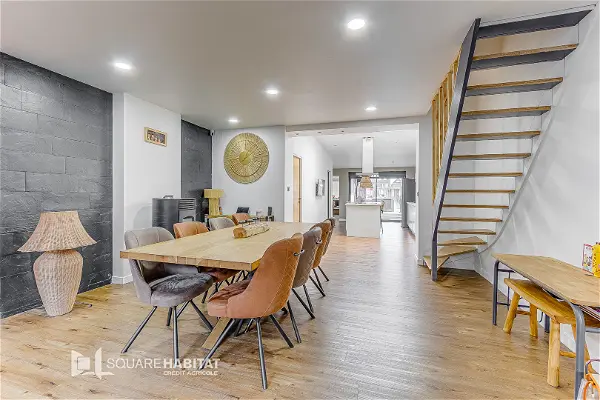 Cette magnifique maison est nichée dans un quartier prisé, dotée d'une entrée, d'une cuisine équipée ouverte sur un salon-séjour d'environ 50m2 et d'un w-c.