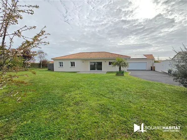 De plain pied total, elle profite de près de 110 m² sur un terrain de 1 000 m² environs.