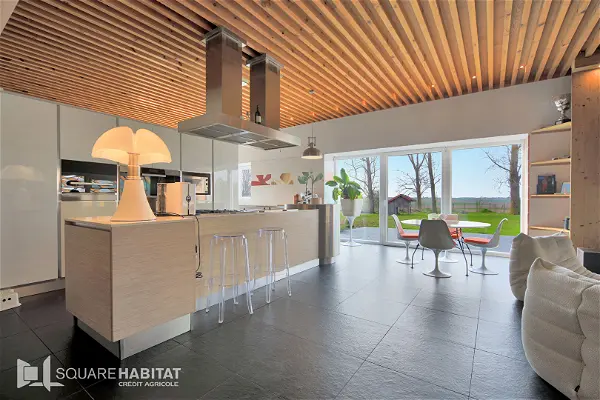 Découvrons ensemble cette propriété à l'abri des regards construction à la pointe de la modernité énergétique 'maison passive' grand séjour lumineux cuisine ouverte et équipée