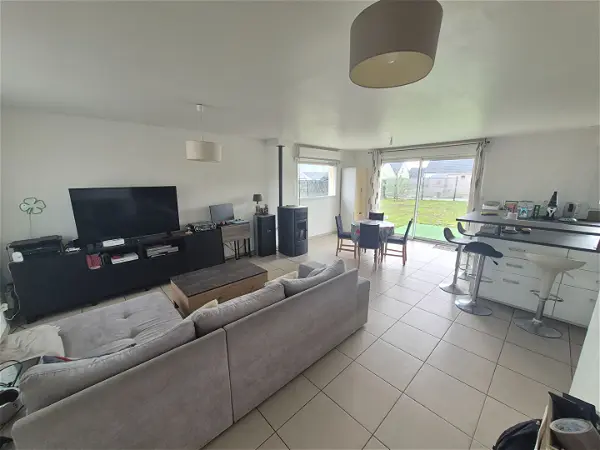 -Espace de vie lumineux regroupant salon, salle à manger et cuisine ouverte aménagée et équipée