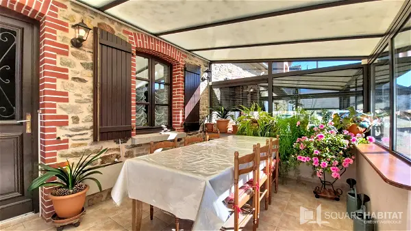 L'habitation comprend 3 chambres confortables, une salle d'eau moderne, un cellier pour plus de rangement, ainsi qu'une véranda offrant un espace supplémentaire pour vos moments de détente ou de repas en toute saison. Un garage vient compléter ce bien.