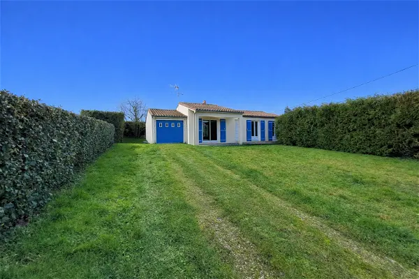 Quartier calme et à proximité immédiate des commodités, plain-pied de 90 m² comprenant : lumineux séjour avec cuisine semi-ouverte, 3 chambres, salle d'eau, WC séparé, garage, terrasse, jardin arboré d'environ 630 m2.