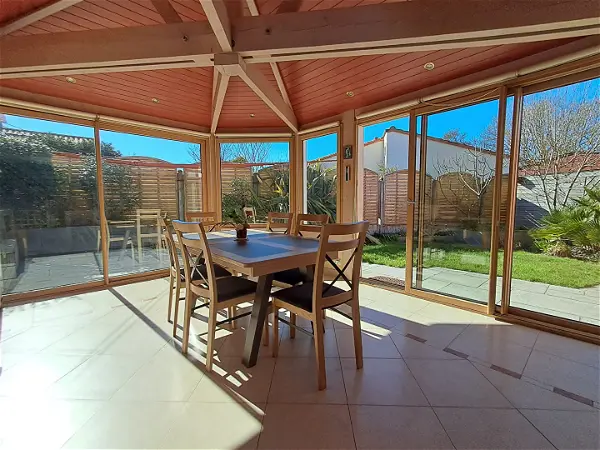 La véranda et le jardin de 278 m² ouvrent la voie à un véritable projet d'extension ou de réaménagement paysager.