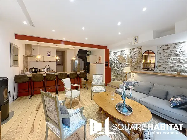 Vous serez séduit par une pièce de vie chaleureuse avec son poêle mixte bois/granulés installé fin 2024, idéal pour des moments conviviaux.