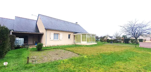 La maison se compose d'une grande pièce de vie avec cuisine ouverte aménagée et équipée donnant sur la véranda, de trois chambres, d'une salle de bains avec baignoire et douche, d'un wc séparé et d'un cellier.