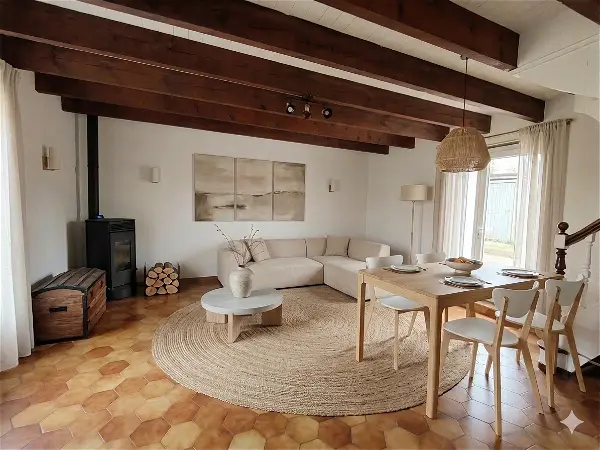 Dès l'entrée, vous serez séduits par une belle pièce de vie lumineuse (44m²) comprenant un séjour/salon ouvert sur une cuisine aménagée et entièrement équipée. Un poêle à granulés vient compléter cet espace chaleureux.