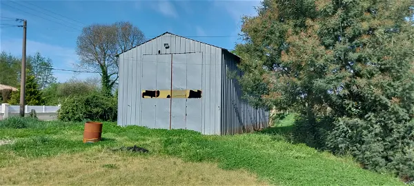 Hangar en tôle, en bon état, sur chappe avec 300m² de terrain (non constructible) environ