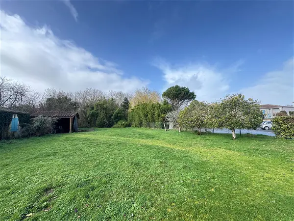 Proche Surgères, en direction de Saint Jean d ' Angély sur une belle parcelle arborée d'environ 1716 m² close avec arbres fruitiers, parcelle constructible dans la continuité du double garage ( avec galetas) et du préau pour camping car soit au total 413 m² en zone constructible. Vous pouvez encore construire votre maison !! Tableau électrique . Forage. Abri bois . Deux portails PVC.