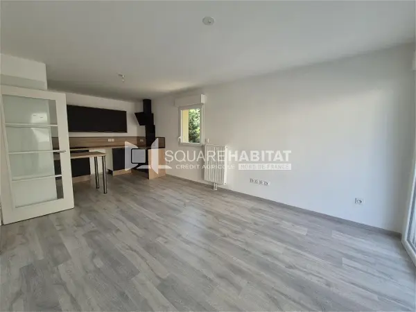 ccGasny. Appartement de 50.50 m² au 2ème étage droite comprenant une entrée sur dégagement avec placard, un séjour ouvert sur un coin cuisine, deux chambres, une salle de bains et un wc. Jardin commun. Cave commune. Parking extérieur dans cour fermée. Chauffage individuel électrique. Libre le 15 Mai 2026 .