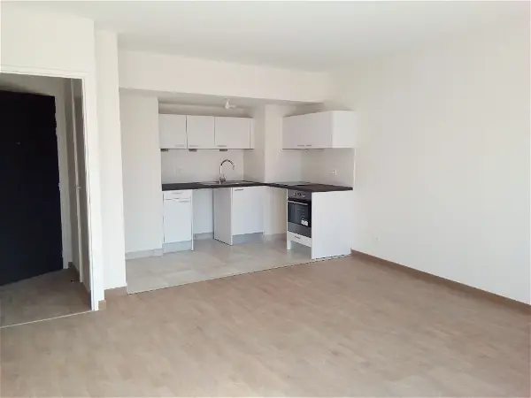 ccUn appartement T2 MEUBLE dans une résidence neuve comprenant une entrée avec un grand placard, un séjour avec cuisine aménagée et équipée (frigo, plaques, hotte, micro-ondes combiné, lave-linge), une chambre avec placard, une salle d'eau et des WC séparés.