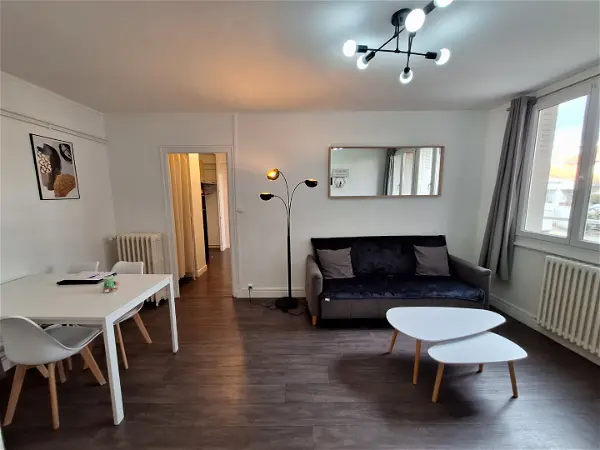 ccVous serez séduits par ce charmant T3 de 44.99 m² carrez ( 61,18 m² au sol) entièrement rénové, situé au 5ème et dernier étage d'une copropriété sans ascenseur, proche de toutes les commodités. Il est composé d'une cuisine aménagée et équipée (plaque et hotte) ouverte sur une belle pièce de vie, de deux chambres et d'une salle de douche avec WC. La production de chauffage est individuelle électrique. Libre de suite VISITE VIRTUELLE SUR DEMANDE Loyer : 660 euros + 70 euros de provisions pour charges Dépôt de garantie : 660 euros Honoraires d'agence : 494.89 euros