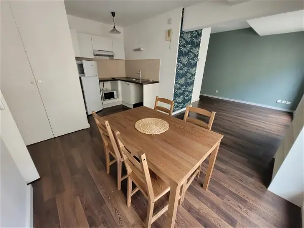 ccAppartement de type 2 rénové en duplex en centre-ville. Appartement atypique comprenant au rez-de-chaussée une buanderie. Au 1er étage, une cuisine équipée donnant sur un séjour légèrement surélevé et une salle d'eau avec WC. Au 2ème étage, une grande chambre avec une salle de bains et WC attenant. Disponible de suite. - Les informations sur les risques auxquels ce bien est exposé sont disponibles sur le site Géorisques : www.georisques.gouv.fr