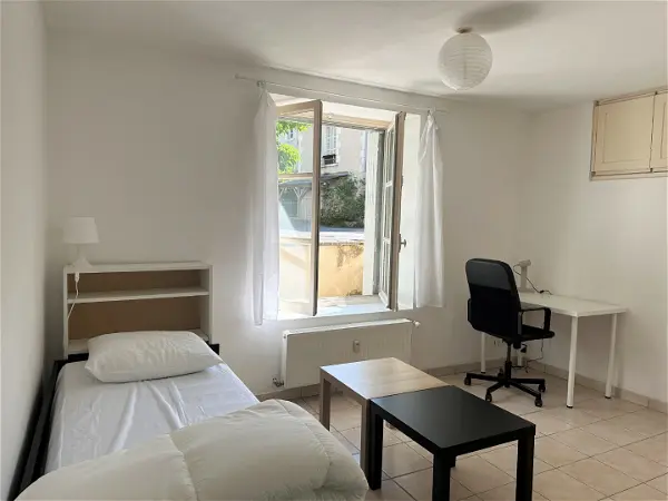 Un studio type comporte une pièce principale, une salle de bain et une kitchenette aménagée.