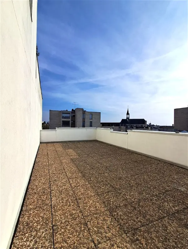 Une grande terrasse de 10.13m² est accessible depuis la pièce de vie.