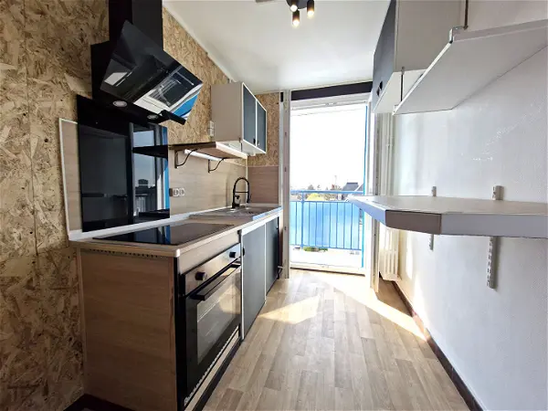 Appartement F2, cuisine semi-aménagée, ouverte sur un séjour lumineux,
