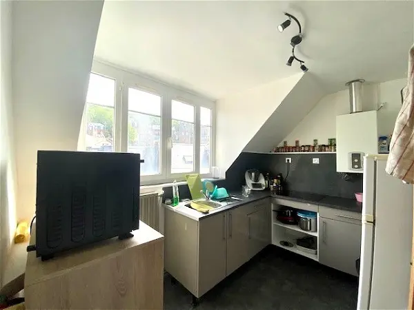 ccDEVILLE-LES-ROUEN - Route de Dieppe - Dans une résidence au calme, un appartement studio duplex de 17.34 m² composé : d'une entrée, d'une pièce de vie avec kitchenette, d'une salle de douche avec WC. A l'étage : une pièce de moins de 9 m² pouvant servir de chambre. Au pied de la ligne TEOR. Le logement est loué avec une place de parking privative. DISPONIBLE LE 06/06/2026 Avant toute visite, veuillez déposer votre dossier directement sur l'annonce du bien, disponible sur notre site www.squarehabitat.fr