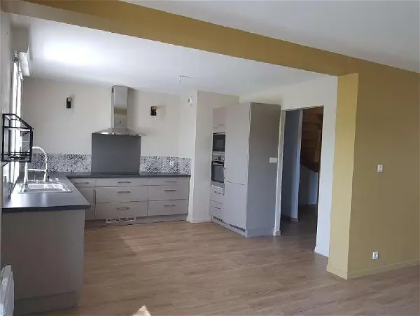 ccMaison de plain-pied comprenant séjour avec cuisine ouverte aménagée et équipée, buanderie, 3 chambres, WC avec lave mains, salle d'eau.