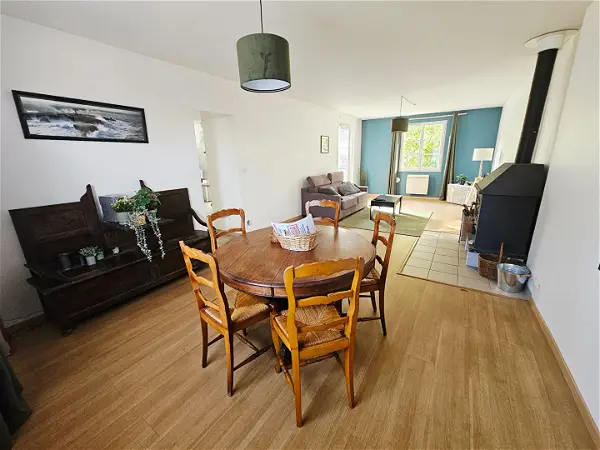 Pavillon de plain pied comprenant: séjour/salon avec poêle à granule, cuisine aménagée et équipée (plaque+hotte+four), 2 chambres , salle de bains, wc. garage. jardin. chauffage poêle à granule. libre 1er mars 2026