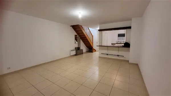ccJolie maison de type 4 de 87.87 m² de surface habitable sur 2 niveaux, au rdc : hall d'entrée, WC, séjour avec cuisine aménagée et équipée ouverte et à l'étage trois chambres, salle de bains, salle d'eau, WC. Garage, jardin exposition Ouest clôturé - mitoyenne des 2 côtés - Libre 4 Février 2026
